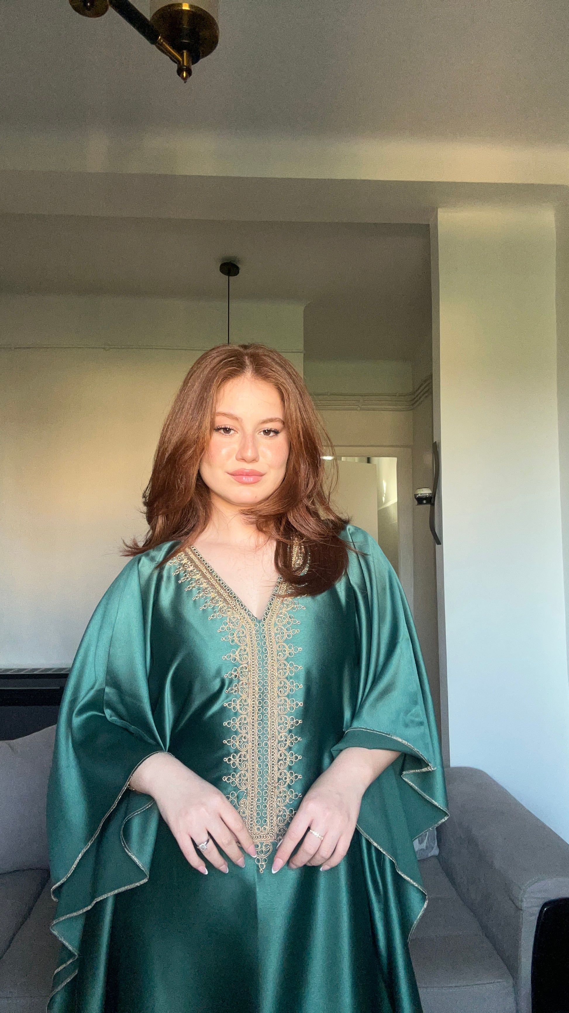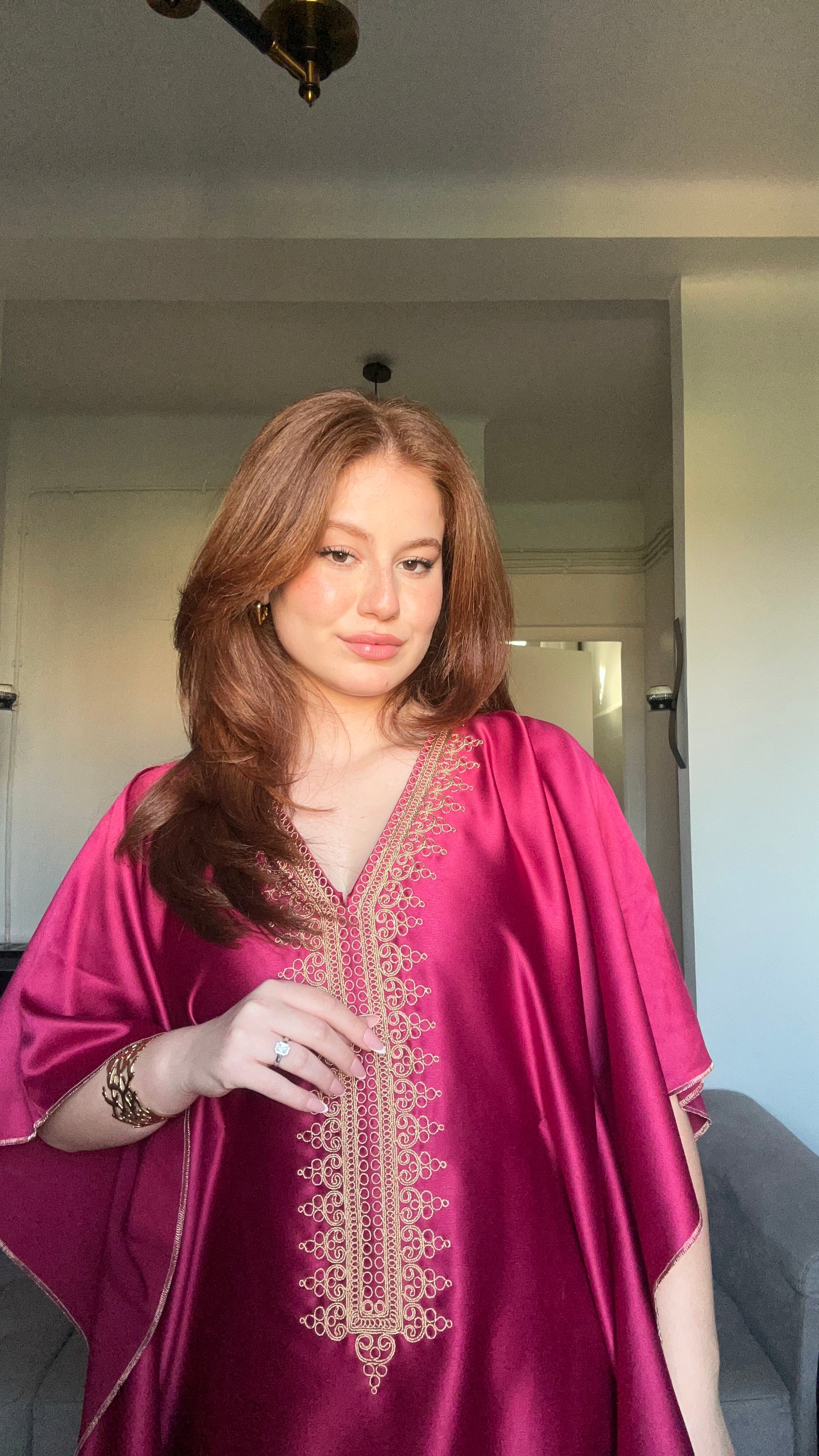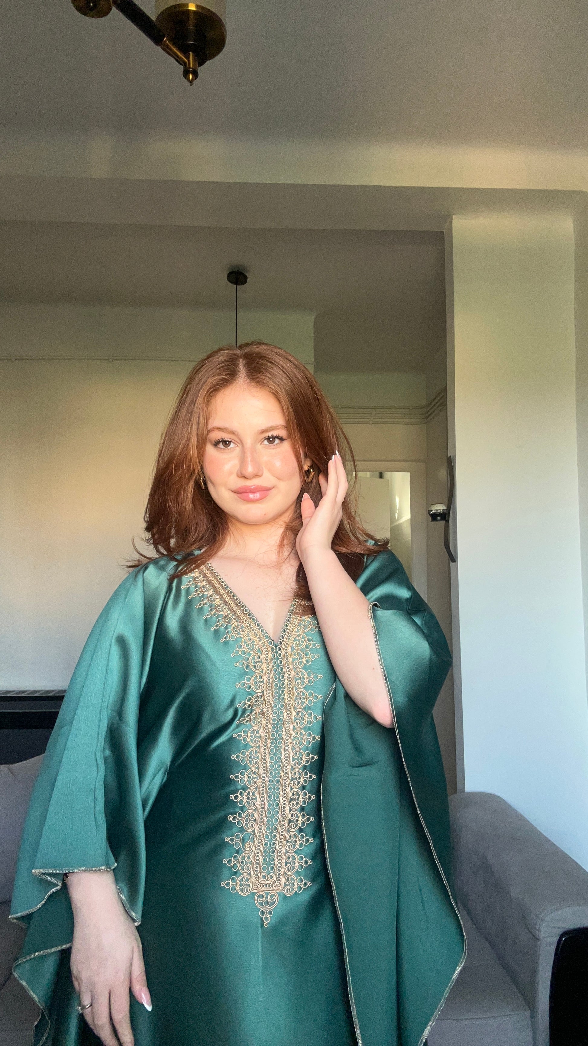 تميزي في يومك المميز بجبة استقبال مصنوعة من قماش ساتان فاخر يلمع بأناقته ويزيدك أنوثة ورُقي. تصميم يجمع بين الأصالة الجزائرية واللمسة العصرية ليعطيك إطلالة ملكية.